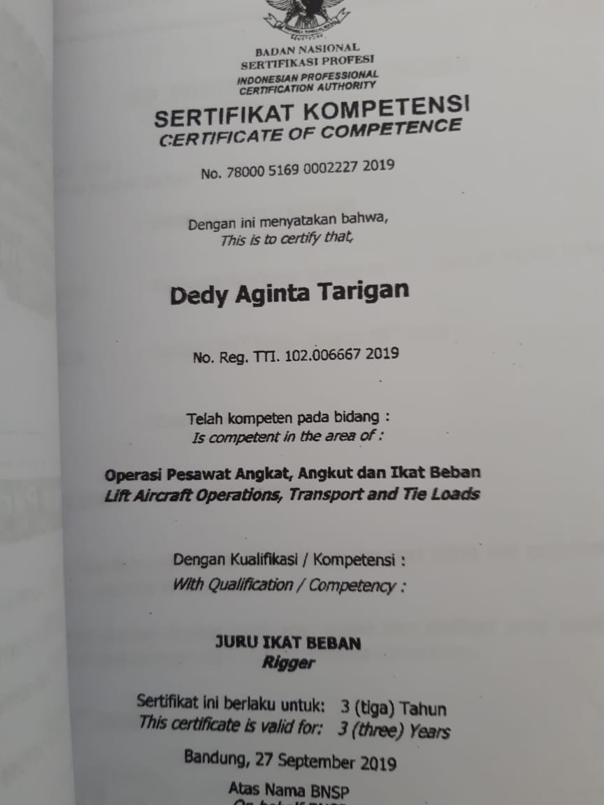 | Skema Sertifikasi | : | Juru ikat beban / RIGGER |