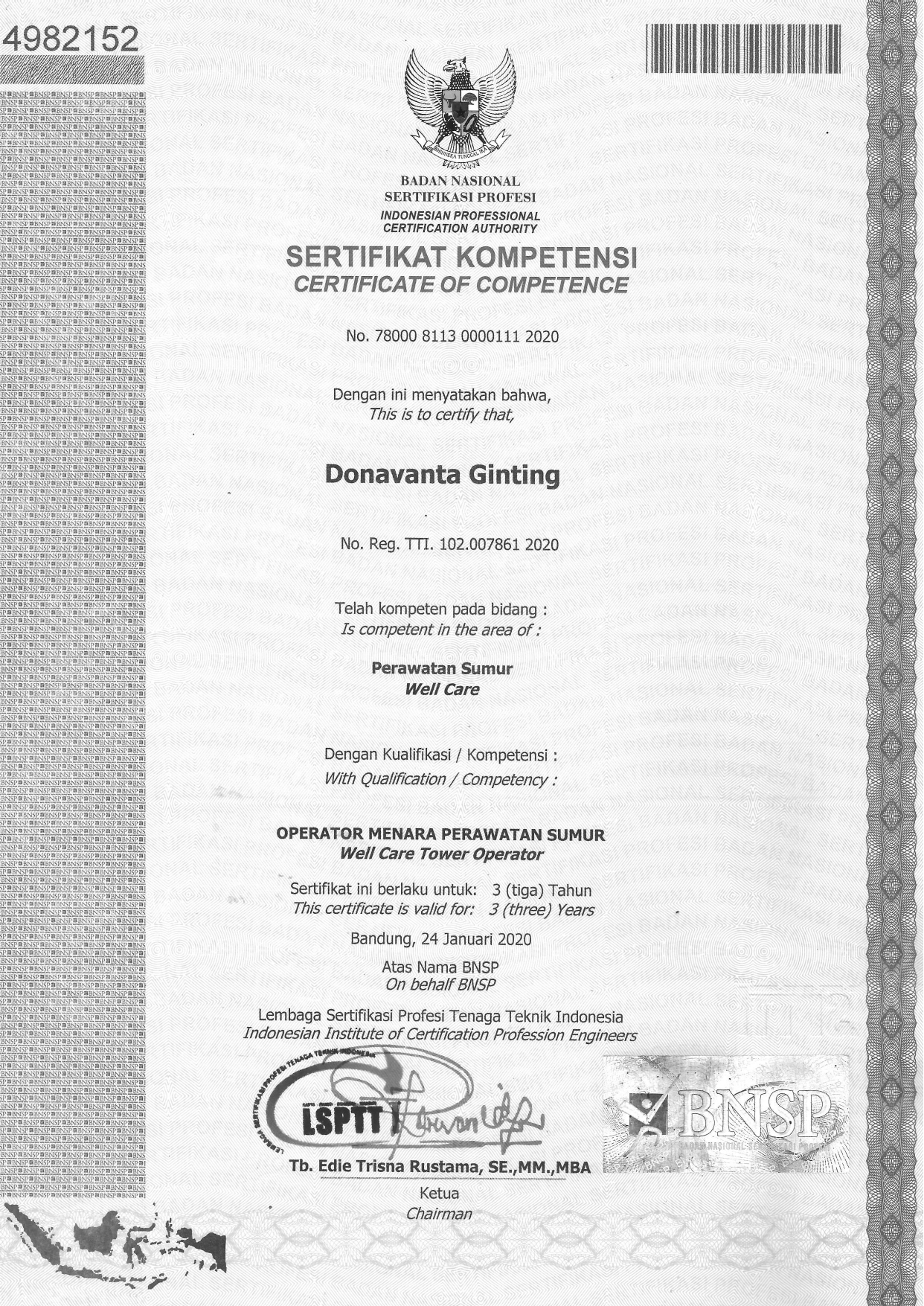 | Skema Sertifikasi | : | Skema Sertifikasi Okupasi Operator Menara Perawatan Sumur |